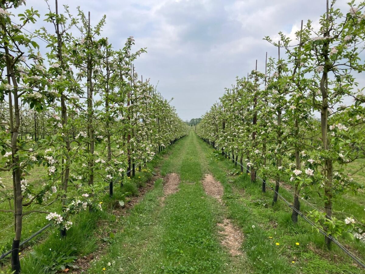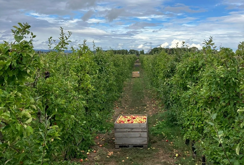 Colliers Elm Farm is one of the newest farms to join Rudford Farm Ltd’s family. Only three miles away from Rudford Farm, Colliers Elm Farm is just seven hectares in size, but has six hectares full of organic apple crop including the different varieties of Pirouette, Gala and Natyra. Colliers Elm Farm has the benefit of extra wide field margins and dedicated biodiversity areas with wildflowers and / or winter birdseed mixes as a result of planting the orchards completely from scratch with consideration for sustainability and conservation.