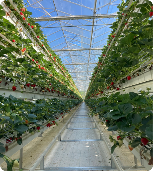 We have created the patented Matrix-GS growing technology that enables us to grow delicious British Strawberries year-round in the UK. This fruit replaces imported crops that can sometimes not taste as good, may come with significant food miles and a large carbon footprint or be drawing on scarce water supply in their home country.